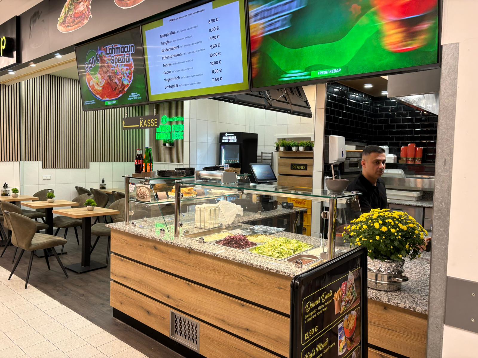 Fresh Kebap in Stuttgart-Mühlhausen steht für frisch zubereitete Kebabs, herzhafte Bowls und hausgemachte Saucen; wir verbinden traditionelle Rezepte mit hochwertigen Zutaten und kurzen Zubereitungszeiten, damit dein Essen immer heiß und aromatisch ankommt. Täglich frisches Gemüse, sorgfältig ausgewähltes Fleisch sowie knuspriges Brot sind für uns selbstverständlich, dazu bieten wir attraktive vegetarische und vegane Alternativen. Unser Team arbeitet schnell, freundlich und mit Liebe zum Detail, sodass sowohl Mitnahmegäste als auch Besucher vor Ort ein sauberes, einladendes Ambiente vorfinden. Faire Preise, konstante Qualität und ehrlicher Geschmack sind unser Versprechen an die Nachbarschaft.